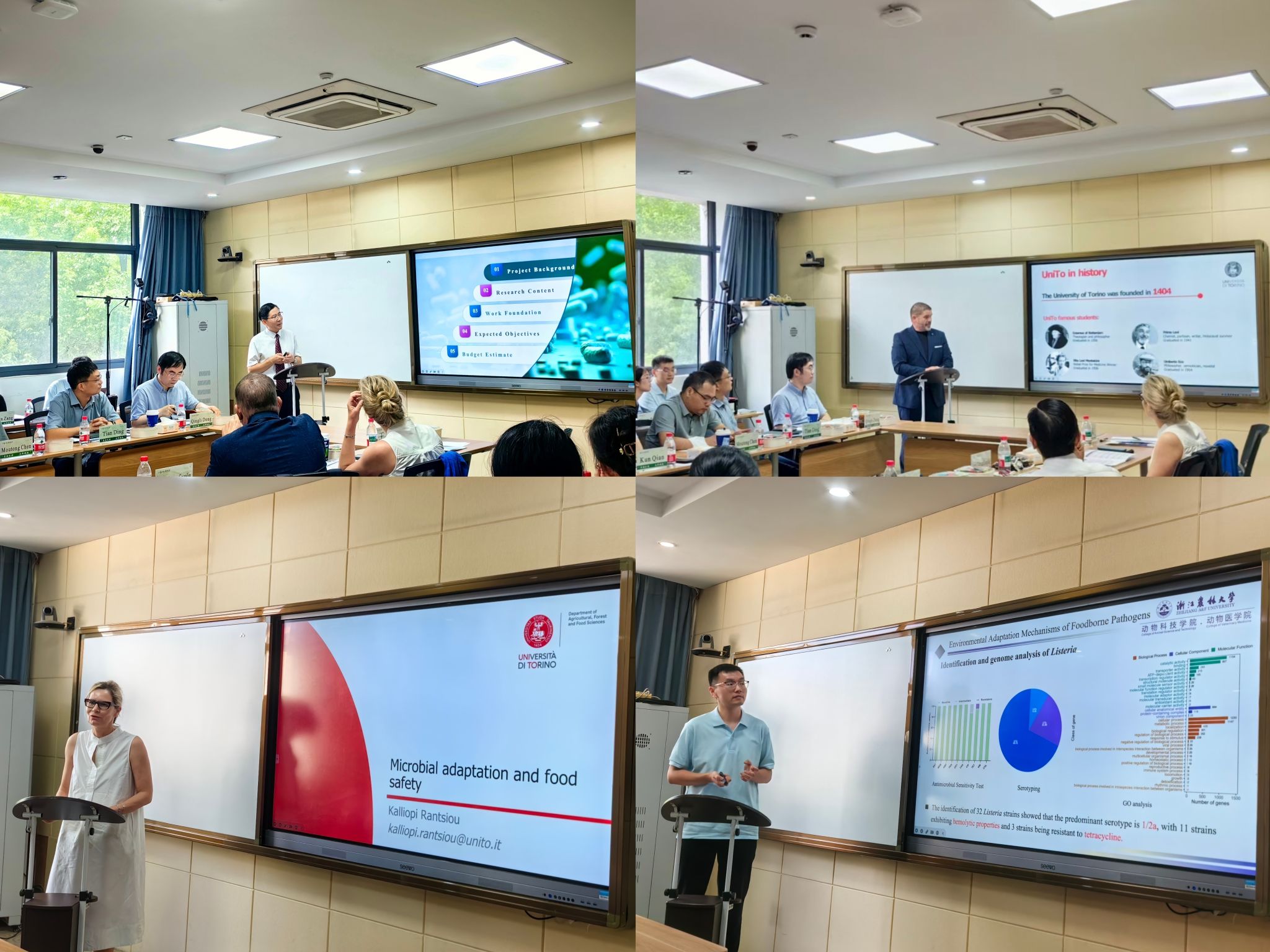 项目负责人、动科动医学院院长宋厚辉教授,详细介绍了项目的整体情况,包括项目目标、研究内容、双方所承担的任务以及考核指标等关键信息;项目合作方负责人、意大利都灵大学Luca Simone Cocolin教授,介绍了都灵大学的基本情况以及研究团队组成,为双方深入合作搭建了坚实的桥梁;项目组研究成员都灵大学Kalliopi Rantsiou教授和开云电竞s13聂政博士,分别就双方开展的研究内容和最新进展进行了详细汇报。