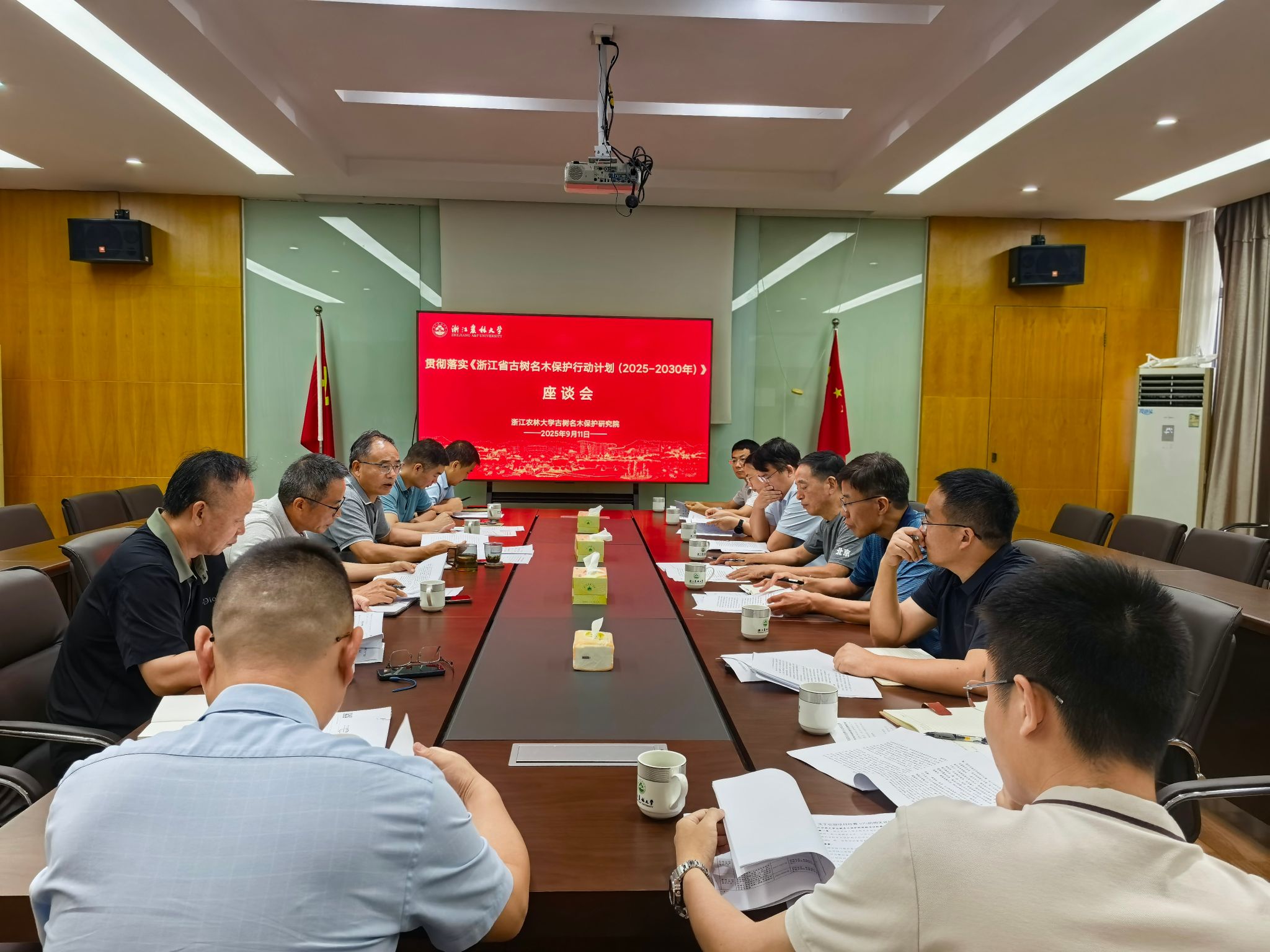 9月11日,开云电竞s13古树名木保护研究院召开专题学习座谈会,深入贯彻落实《浙江省古树名木保护行动计划(2025-2030年)》(以下简称《行动计划》)。研究院院长胡祖吉等15余名研究团队负责人代表参会,会议由古树名木保护研究院郑炳松主持。