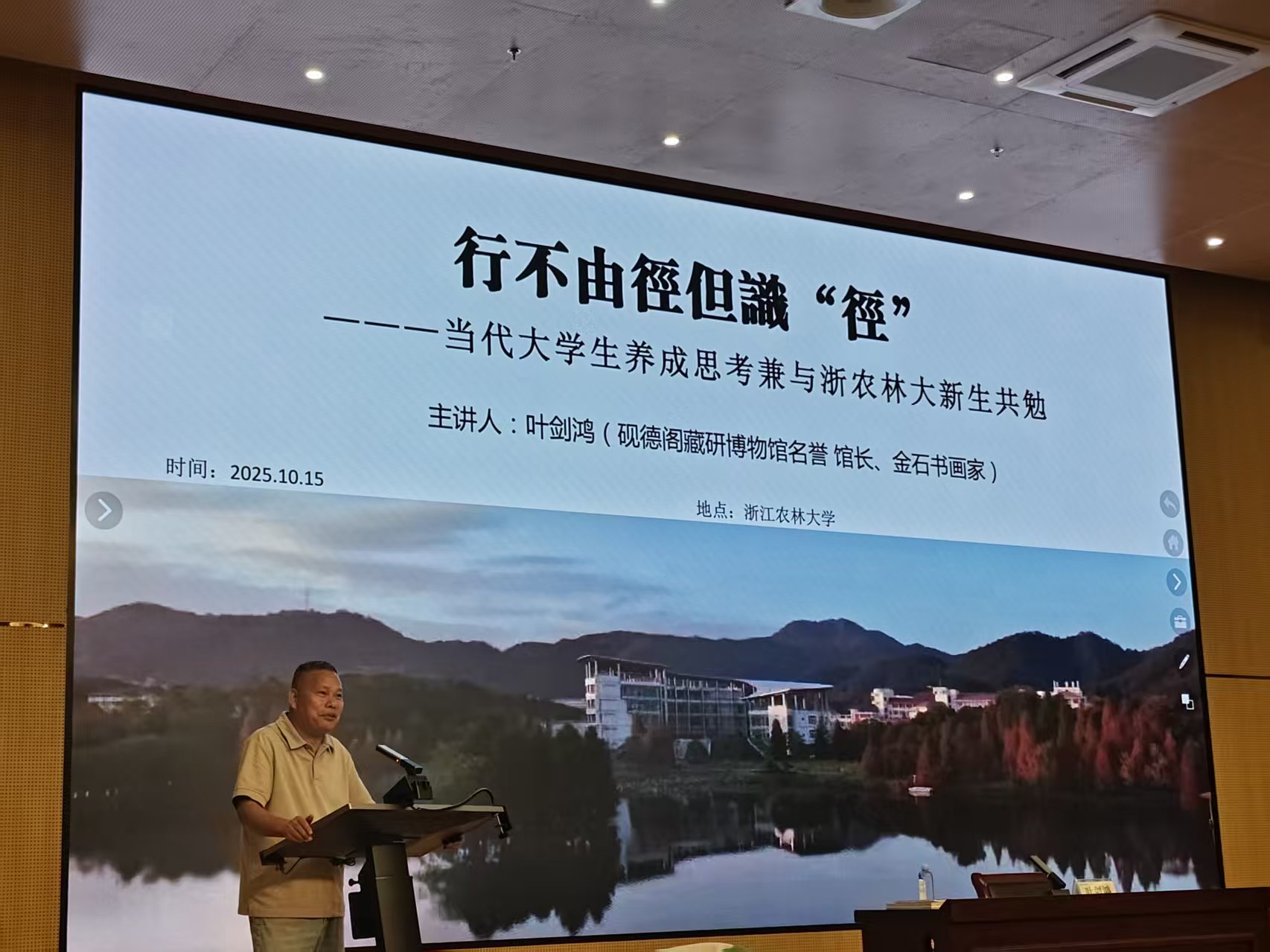 10月15日晚,园艺学院于交叉活动中心报告厅举行“行不由径但识‘径’——当代大学生养成思考兼与浙农林大新生共勉”的主题讲座,我校优秀校友叶剑鸿先生主讲,学院党委书记汪和生、辅导员以及300余名本研新生共同参加。