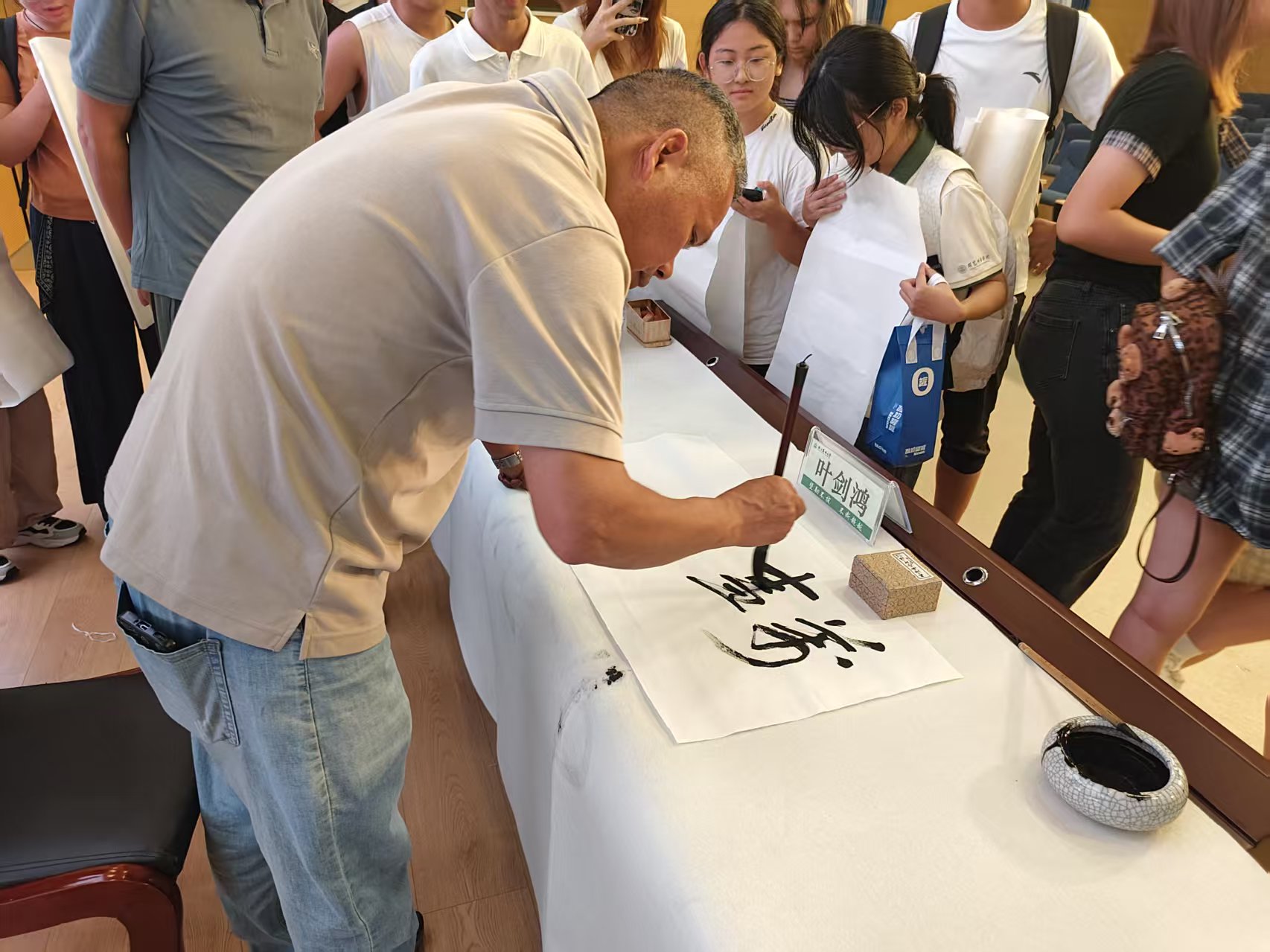 互动环节中,大家踊跃提问,叶老师一一耐心解答,妙语连珠,掌声不断,还为新生题写“守正笃实”“行稳致远”“上善若水”等赠言,将“道艺兼修”的理念以最直观的方式呈现。
