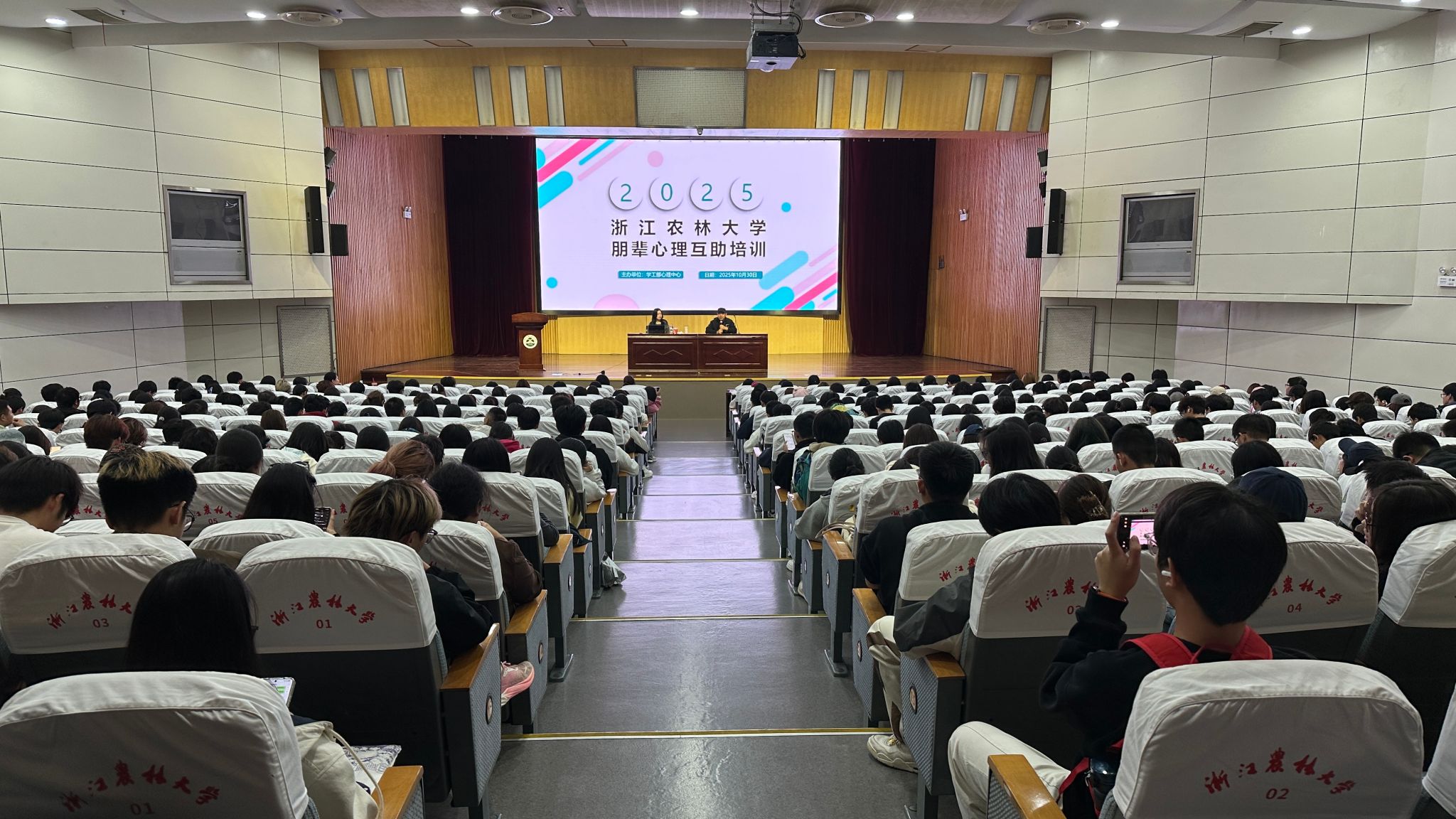 10月30日,学工部心理健康教育中心面向2025级全体班级心理委员及寝室心理导航员,组织了一场主题鲜明、内容实用的朋辈心理互助培训讲座。本次讲座邀杭州医学院心理健康教育中心专职教师蓝一沁主讲。