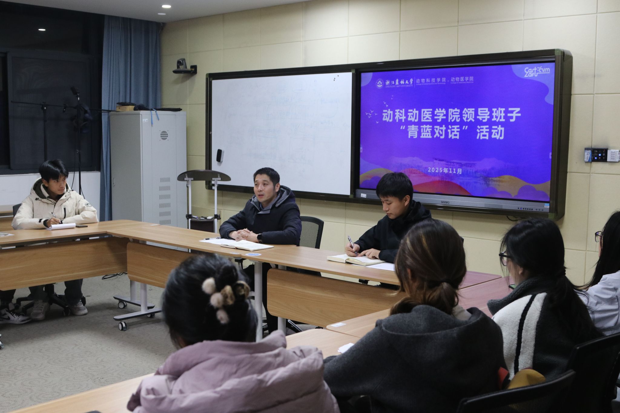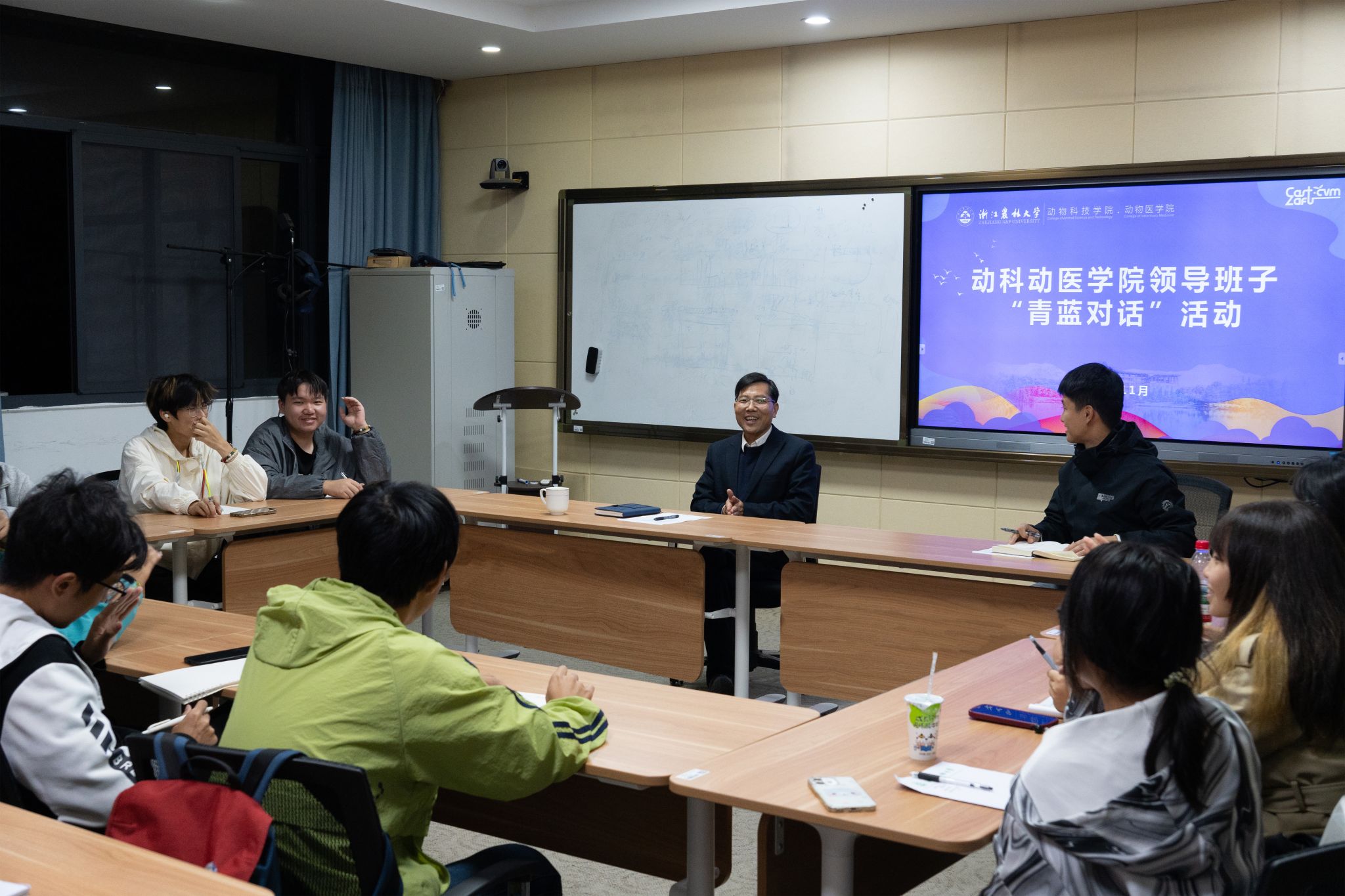 11月11日至18日,动科动医学院开展了“青蓝对话”活动。学院领导班子,相关辅导员及25级本科新生各班学生代表参加活动。
