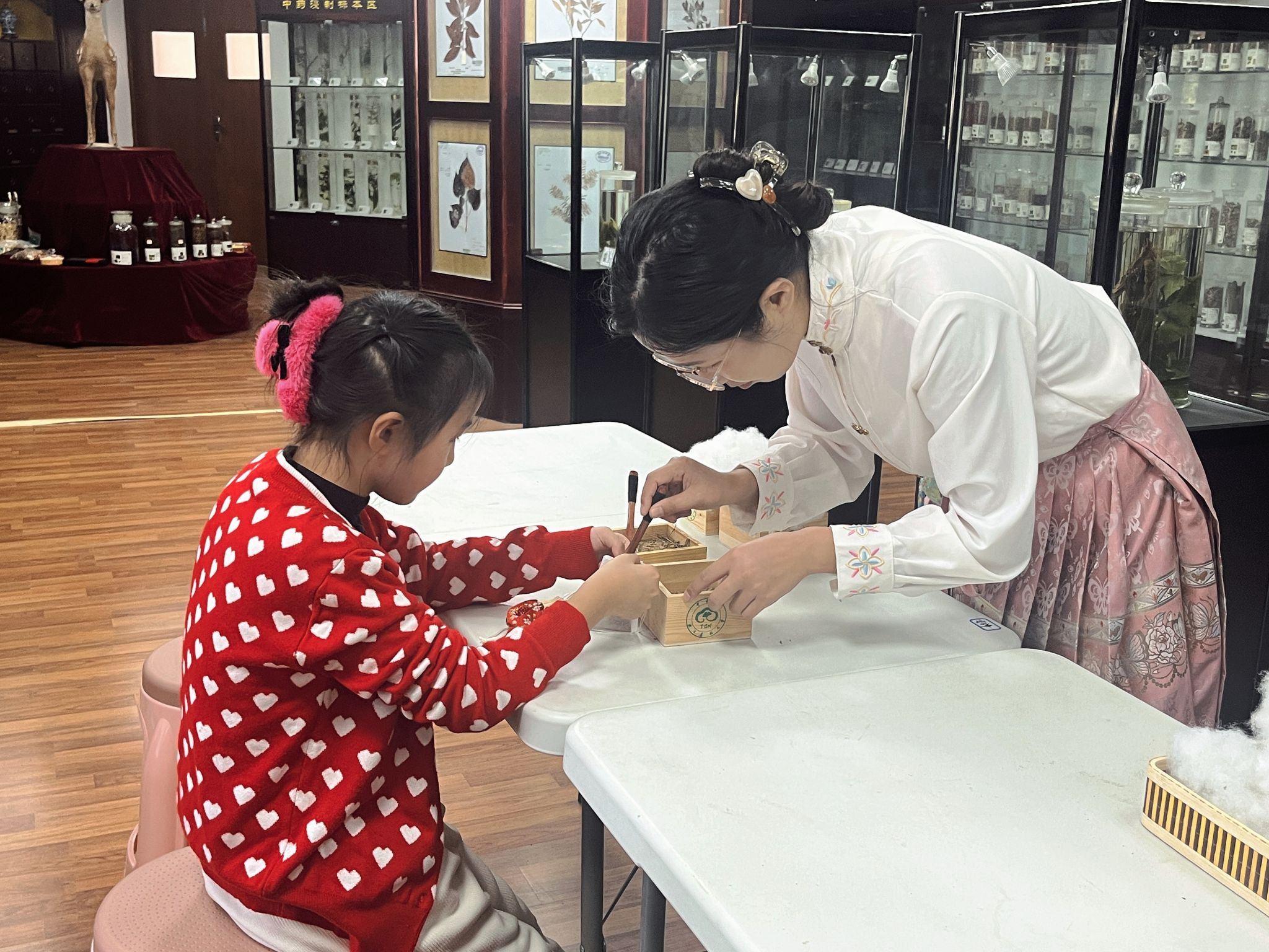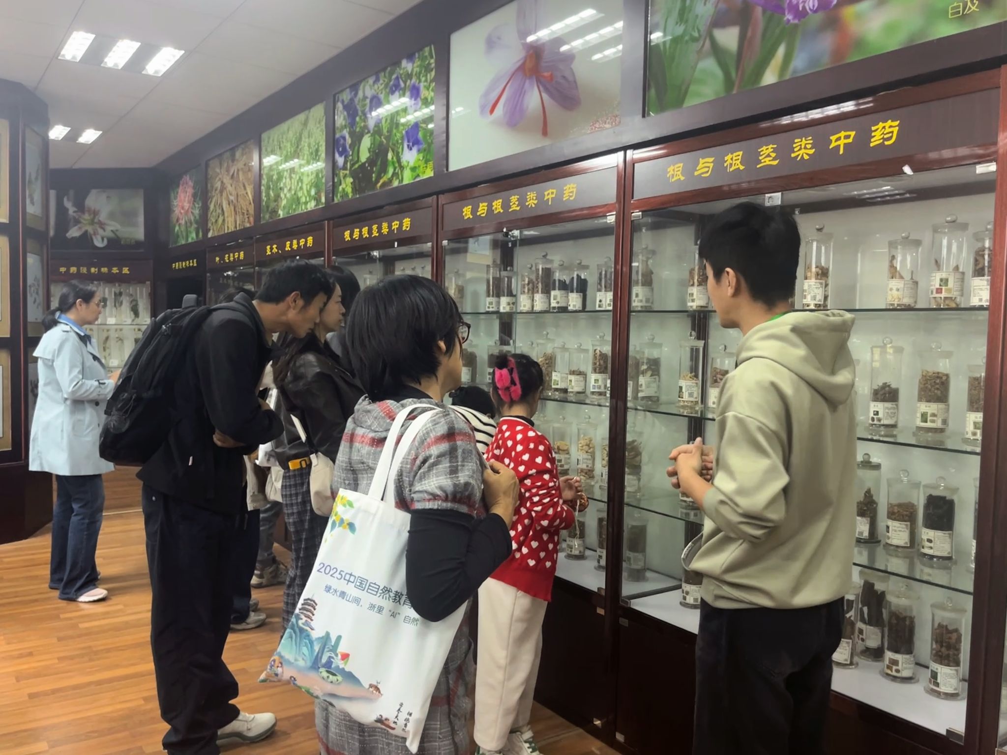 活动中,食健研233班与243班的学生讲解员带领大家走进学院中草药标本馆,生动讲述了标本馆的发展历程,系统介绍了浸制标本与蜡叶标本的制作保存方法、各类中药的分类与功效,以及蕴含传统智慧的中药仿真药柜。每一种药材背后,都承载着千年中医药文化的智慧,凝聚着自然的慷慨馈赠。