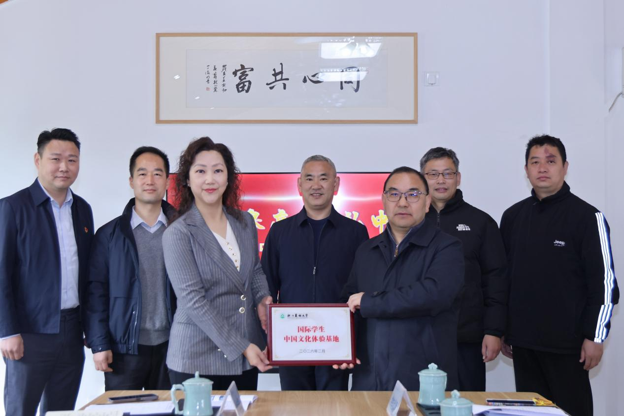 参观结束后,活动进入了庄重的授牌仪式环节。在致公党省委会专职副主委金爱武等领导的见证下,国际教育学院与致公党省直综合七支部主委吴韵创建的“同心·共富工作室”正式创建“国际学生中国文化体验基地”。