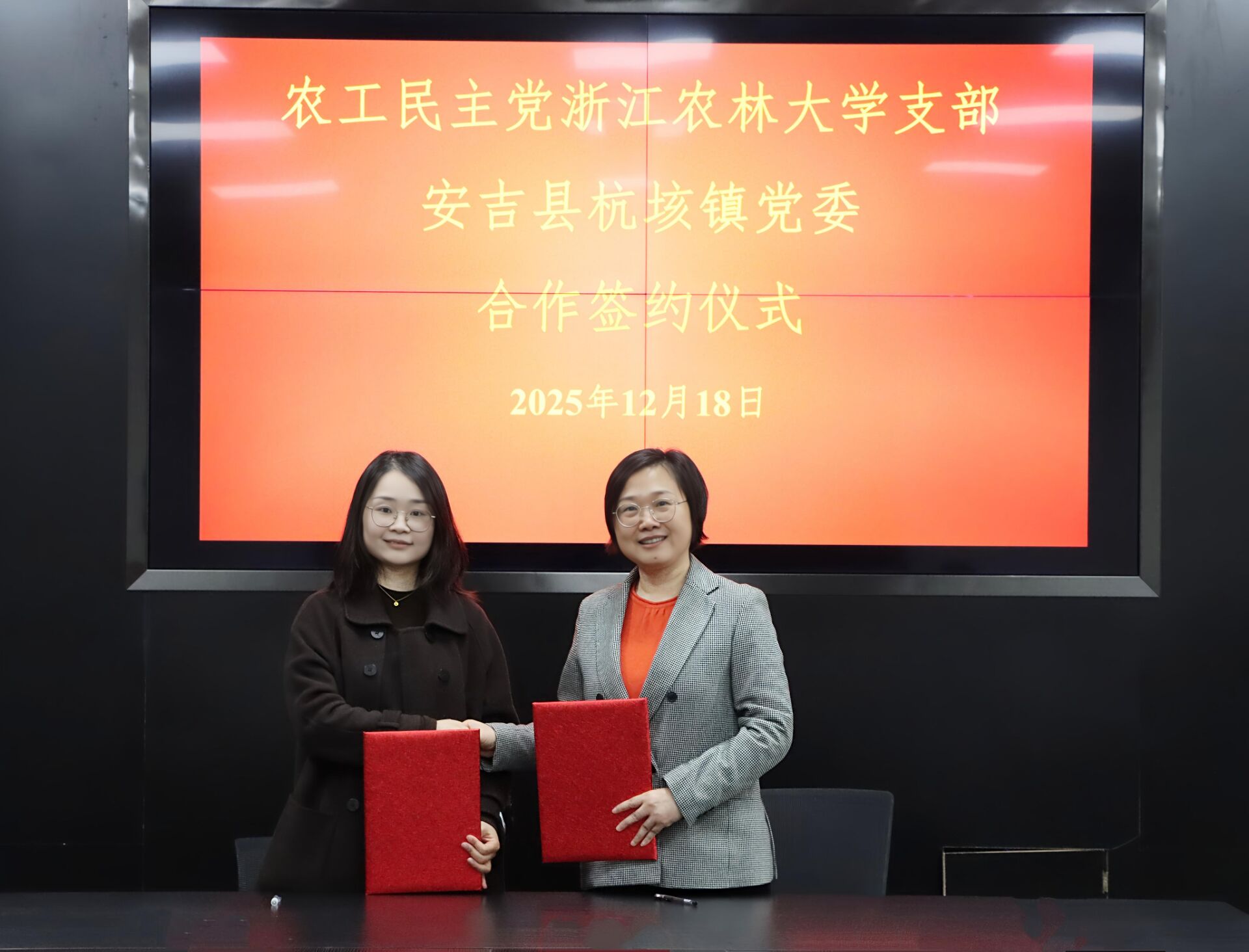 12月18日,农工党开云电竞s13支部与安吉县杭垓镇党委合作签约仪式在杭垓镇举行。校党委副书记、统战部部长倪建均,校党委宣传部部长、统战部常务副部长晋杜娟,统战部相关工作人员、农工党学校支部部分党员、杭垓镇相关负责人和部分村负责人参加活动。农工党学校支部主委应叶青与杭垓镇党委负责人签订合作协议。