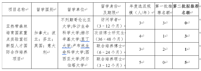 我校国家留学基金委创新型人才国际合作培养项目2023年度校内选派工作已经启动。本年度共选派15位师生国家公派前往加拿大不列颠哥伦比亚大学、波兰华沙生命科学大学访学或留学。根据第一批学校推荐情况,第二批推荐类别和名额如下: