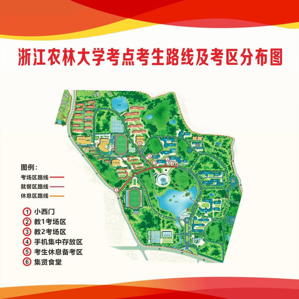 2.考试期间,东湖校区小西门(杭州市临安区农林大路1178号)作为考生进校入口,请考生按照指定路线进入考区,详见“考生路线及考区分布图”。