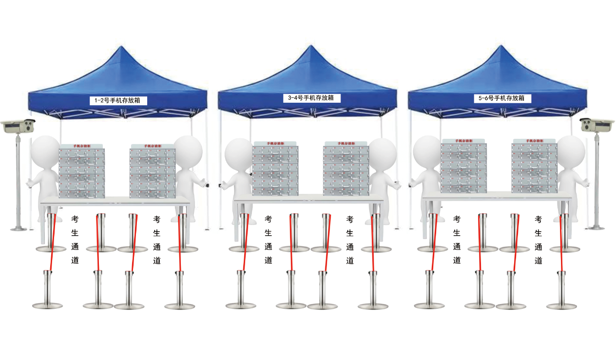 考试封闭管理区域入口附近设置考生手机集中存放区,考生进入考试封闭管理区域后,根据现场指示牌及工作人员引导,将手机存放于任意一个手机存放柜的任意一格,取下钥匙即可。请考生妥善保管钥匙,切勿遗失!