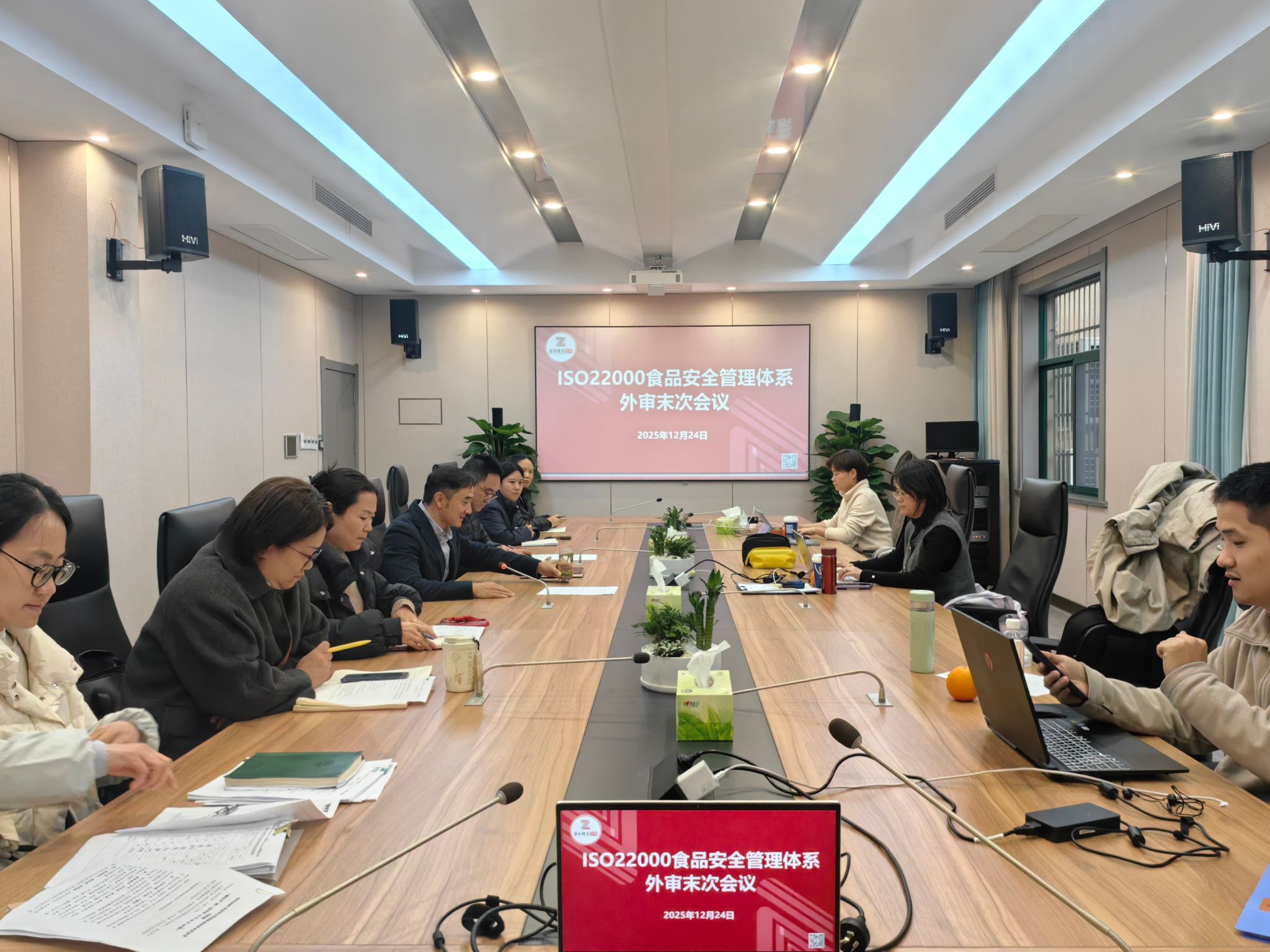 12月24 日下午,外审末次会议召开。公司总经理陈审声,公司监事会主席、食品安全小组组长李曦出席会议,涉及部门负责人参加会议,并听取审核报告。报告指出了公司ISO22000食品安全管理体系的整体运行成效显著良好,但在设施设备规范管理、仓储管理、标识规范管理等环节存在改进机会,并提出了整改事项。审核结论明确:公司在规定期限内完成不符合项纠正后,推荐换发认证证书。