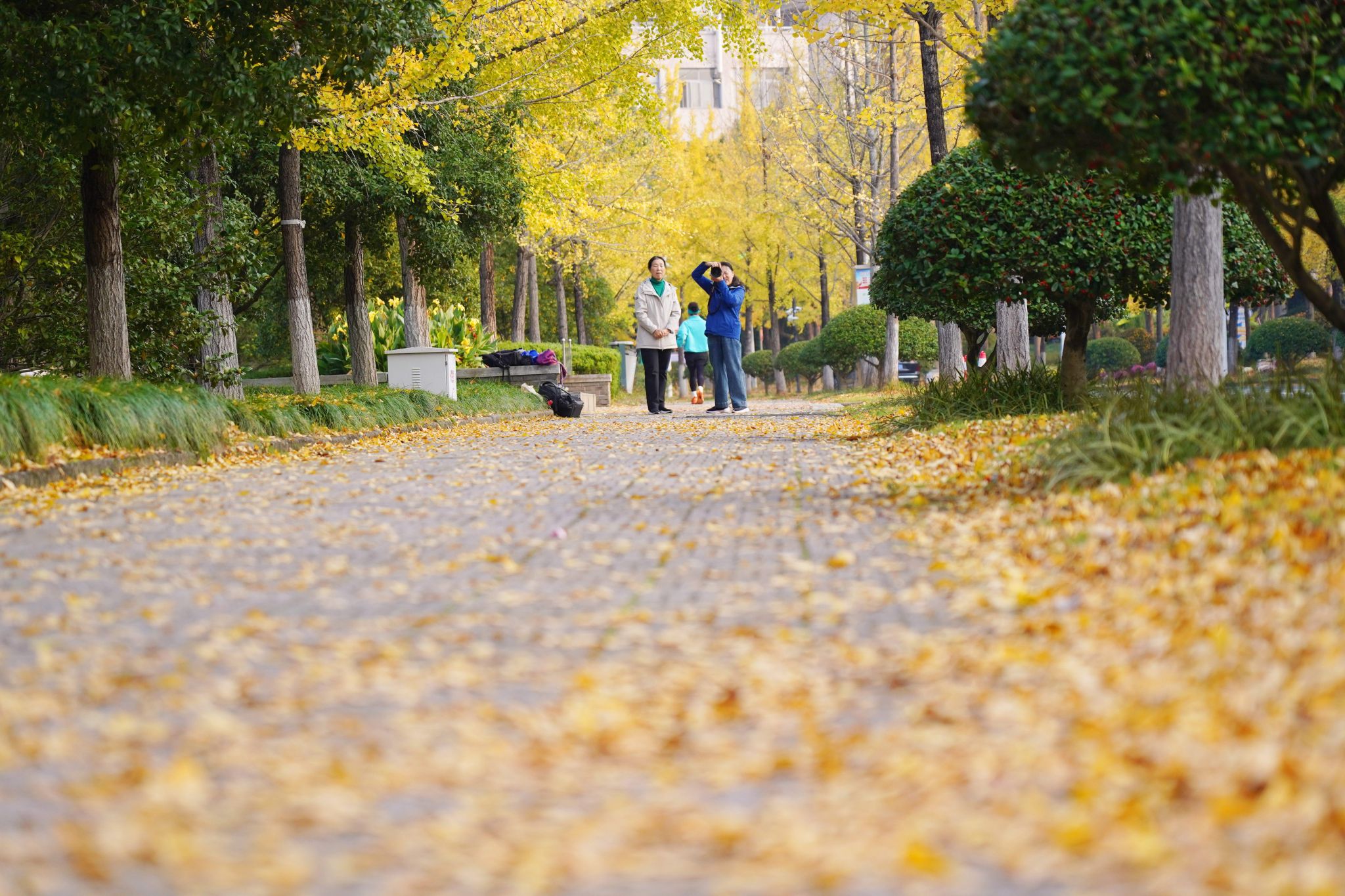 据了解,该校植被种类丰富,其中一条银杏大道种植了数百株银杏及其他彩叶树种。每到十一月,校园便仿佛打翻了调色盘,叠翠流金,美不胜收。师生无需远行,在校内即可欣赏如画秋色。不少师生结伴而来,拍照记录,还有人带上专业设备,捕捉这份季节限定的美好。