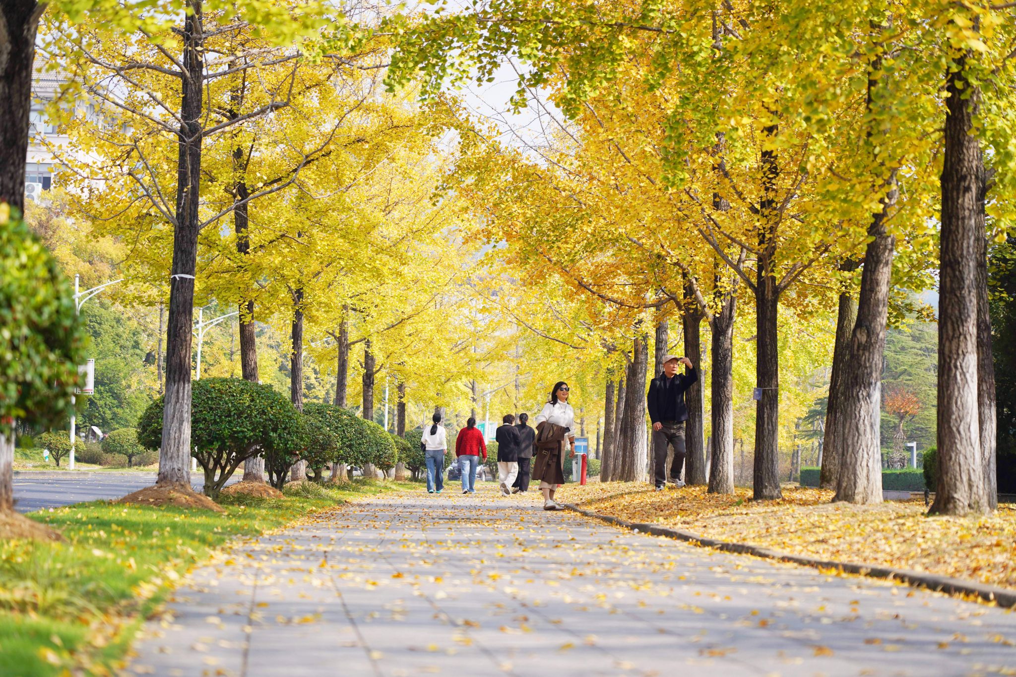 近日,开云电竞s13校园里银杏叶纷纷飘落。从2010年起,学校每到银杏叶黄时,除主干道外,其他区域都相应减少落叶的清扫频次,让师生更好地感受美景。图为铺满银杏叶的校园。