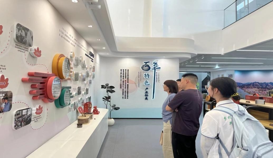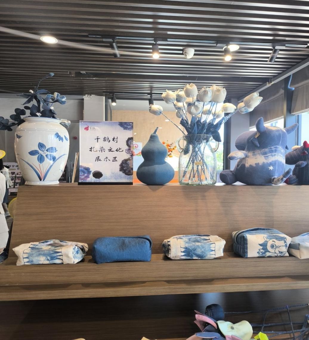 作为“妇女能顶半边天”思想的重要发源地,千鹤村以红色文化为根脉,走出了一条“红色 IP+乡村运营”的特色共富路。实践团走进千鹤书屋,只见扎染布艺、手工旗扣、女性手包等特色手工艺品琳琅满目,非遗扎染、千鹤鹤羽、蚕丝绒制作等体验项目,让“文化+文创”的产业生态触手可及。村社食堂里“为人民服务”的牌匾与老物件相映,更让红色底蕴与岁月风味交融。