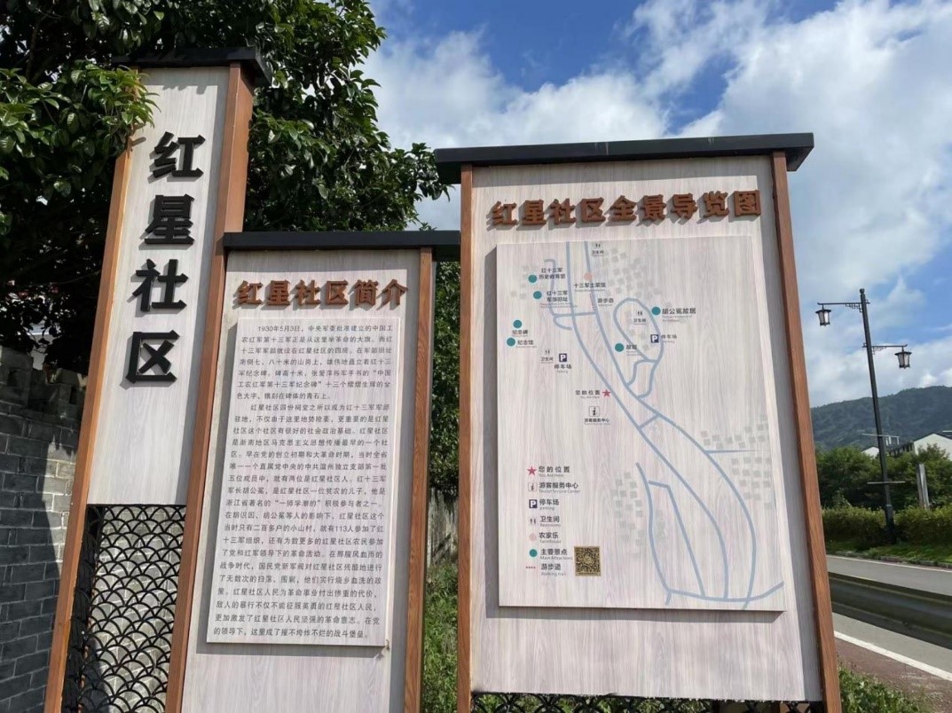 红星社区属于浙南红军小镇项目的核心区域,与红十三军纪念碑、红十三军军部旧址遥相呼应。走进红星社区,社区办公楼内外突出的红色和军味标语映入眼帘,浓厚的红色氛围在周围萦绕。