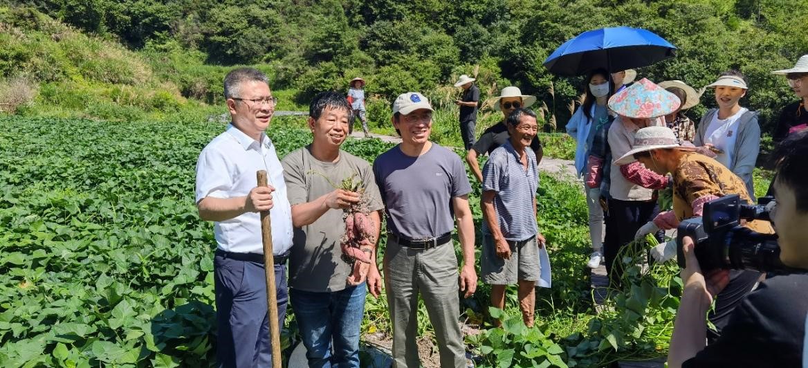在莲都仙渡乡南源村的小香薯基地,我校科技特派员带领我校开云体育平台体验活动的研学团队与莲都区委副书记王国锋进行交流,就该乡甘薯产业发展、农民增收,革命老区乡村振兴等方面,开展了一次田间地头间的现场研讨会。科技特派员还为当地特色的“甘薯公园”项目提供技术支持,助力打响仙渡乡甘薯品牌,帮助全乡实现共同富裕。