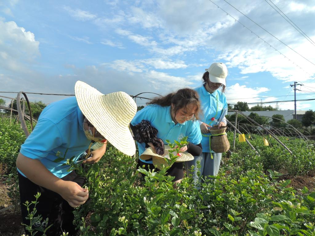 实践团沿生产线展开调研,从午间采摘到拌合窨花,深入各环节全产业链,通过面对面访谈与亲身实践的形式了解花茶生产面貌和发展困境。为加深对茉莉花茶的生产加工技艺的了解,实践团成员们还分组对不同的对象进行了采访记录,通过与一线工人的交谈中,调研团队切实了解到花茶前期生产加工环境的困苦和当前科技水平与现实条件的有限。调研团队围绕如何改善生产工艺与切实落实机械化展开思考讨论,并立志以此作为未来研究突破方向,为后期科技助农强农指明方向。
