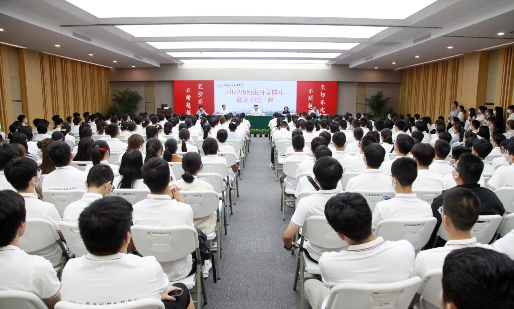 开学典礼在庄严雄壮的国歌声中拉开帷幕。谢志新首先代表学院向467名2022级新生表示热烈欢迎。她鼓励同学们心怀梦想,志存高远,学习科学家精神和企业家精神;珍惜时光,脚踏实地,提高自主学习能力;勇于实践,争做栋梁之材,在实践中磨炼意志,增长才干。