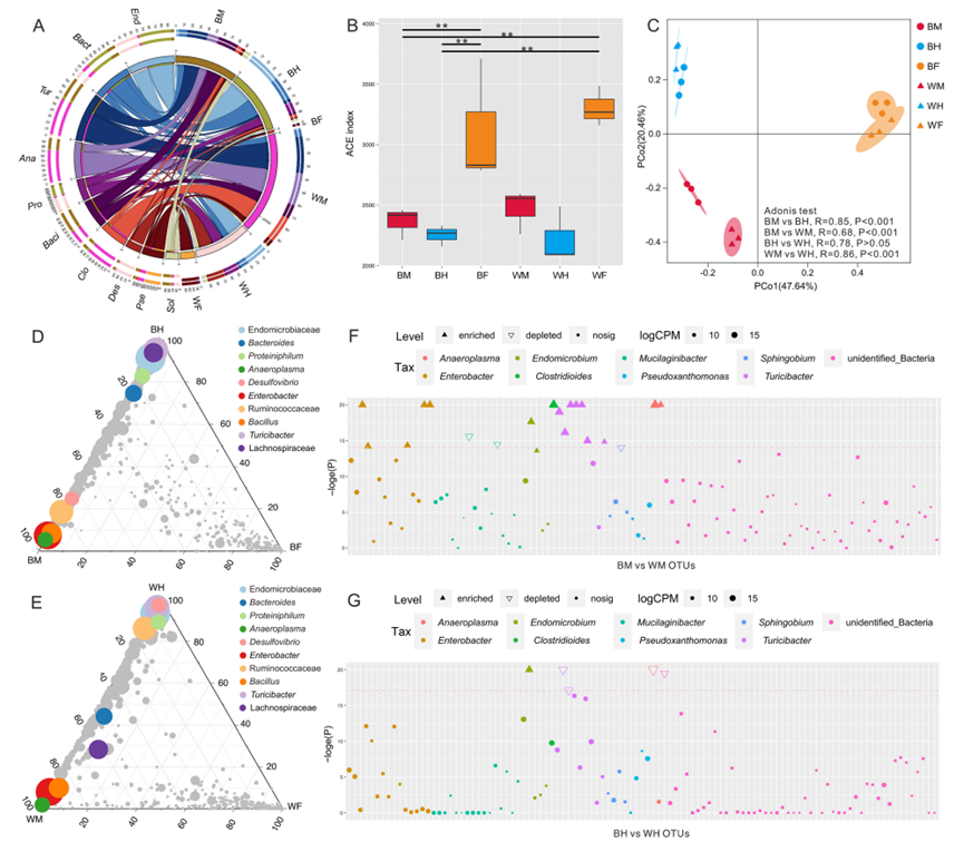图3. 双叉犀金龟肠道微生物群落结构特征