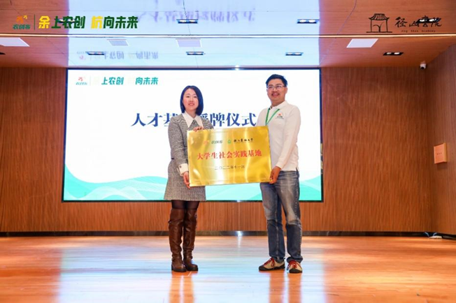 会上举行了人才基地授牌仪式。魏玲玲与余杭区农创客发展联合会副会长陈波分别代表校团委、余杭区农创客发展联合会达成协议,共建大学生社会实践基地。根据协议,双方将以项目制、课题组等形式组织在校大学生参与余杭区寒暑假社会实践,搭建学生成长成才平台,助力余杭区社会经济发展。