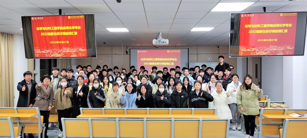 2月27日,应用化学专业2022级《新生研讨课》结课汇报在教1-401举行,化材学院党委副书记及团委书记、副书记和辅导员到会指导。汇报会由应用化学专业建设负责人主持。