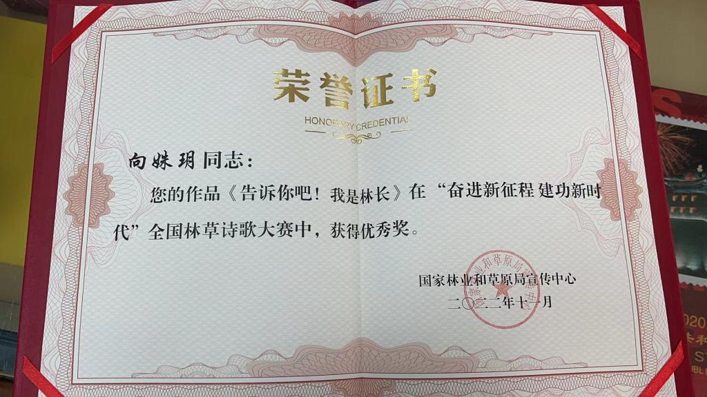 由全国林业和草原局主办的“奋进新征程 建功新时代”全国林草诗歌大赛结果揭晓,我校学生通讯社学子向姝玥的作品《告诉你吧!我是林长》获得优秀奖。