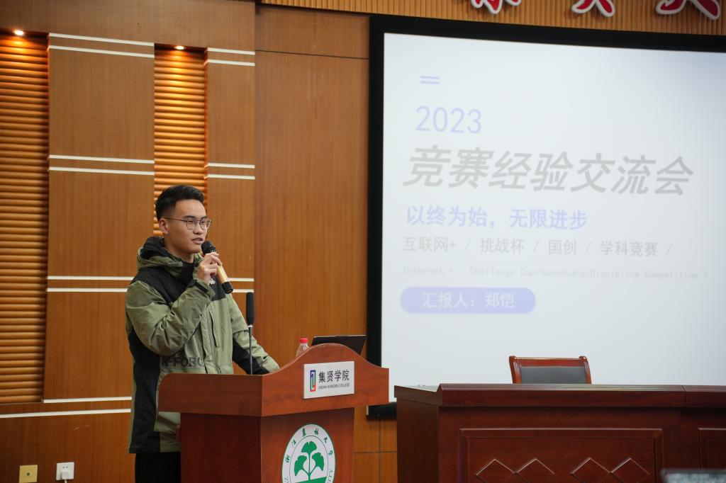 为增强学生创新能力与创业意识,促进学生的创新创业活动,日前,集贤学院举办第九届“互联网+”大学生创新创业大赛经验交流分享会。本次分享会是创业沙龙第三十讲,食健院粮油储检专业20级本科生叶瀚蔚、光机电学院机械专业21级本科生郑恺、化材学院应用化学专业20级本科生蒋林彤应邀分享了他们的参赛经历和心得体会。70余名大学生创业团队成员参加了本次分享会。