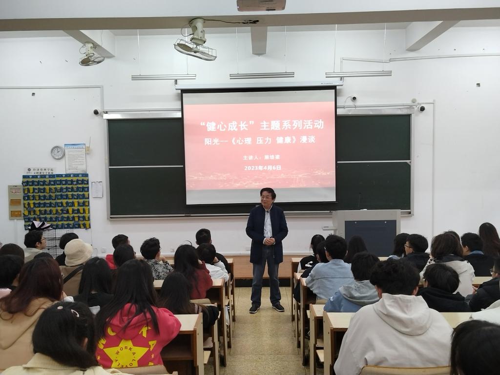 施培梁以“阳光——心理·压力·健康漫谈”为主题,从“健康的重要性”“心理健康”“减压方法”等三个方面,以丰富的现实案例切入,结合基本理论知识,深入浅出地为同学们讲解大学生心理健康的重要性,引导同学们从多个方面理解和认识心理健康,并就如何减缓压力提出了富有针对性的意见和建议。同学们表示此次讲座有助于积极认识和应对自己在学习、生活中遇到的各类心理压力,提升了面对和处理问题的能力和勇气。