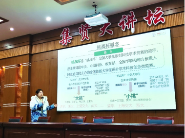 11月25日晚,“东湖杯”(“挑战杯”校赛)宣讲会在集贤大讲坛召开,由校科创中心相关负责人主讲,集贤学院各级学生参加本次宣讲会。