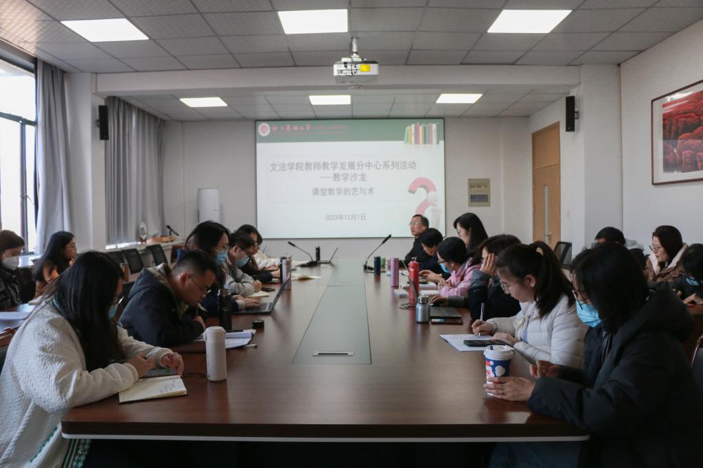 12月7日,文法学院教师教学发展分中心举办教学沙龙活动,主题为“课堂教学的艺与术”。学院近三年新进的教师、教学秘书等相关老师共30余人参加活动。校督导组副组长章晓雯、校督导田信桥作为特邀嘉宾参加活动并作辅导报告。