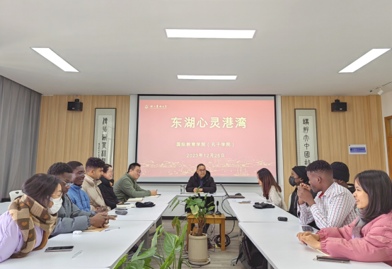 12月26日上午,国教学院心理辅导站举办 “我为学院发展献一言”东湖心灵港湾活动,进一步倾听学生心声,加强交流,助力提高学生服务。国教学院书记、院长赵有华,学生管理负责人,心理辅导站成员和国际学生代表出席活动。