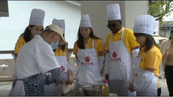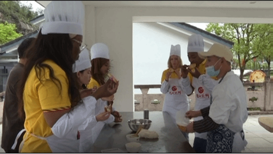 留学生们来到仙都景区的缙云烧饼培训中心,学习了缙云烧饼的历史故事及相关知识,在培训师的指导下开始缙云烧饼制作体验,边体验,边和老师互动交流,让他们深切感受到缙云传统美食的魅力,以及缙云饮食文化的浓郁特色。