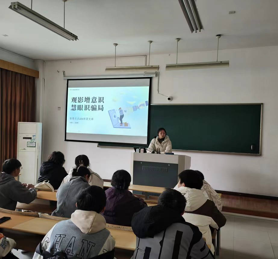 农学212班、农学231班等团支部组织开展以“反诈骗”为题的主题班会,围绕诈骗的常见形式、防范措施、网络安全与个人信息保护等方面,结合身边的案例,讲好反诈第一课。农学232班、农学研231班等团支部组织开展反诈知识竞赛、反诈小游戏等活动,同学们在娱乐的同时详细了解了网络诈骗的常见类型、识别方法以及应对措施。植物保护232班等团支部组织同学演绎反诈小品和情景剧,拍摄反诈宣传视频,从身边出发,强调了反诈防骗的重要性。植物保护231班、智慧农业231班团支部在班级内成立反诈宣讲团,通过宣讲,传播正确的防骗观念,引导身边同学提高防骗意识,谨防上当受骗。