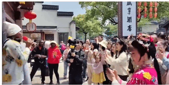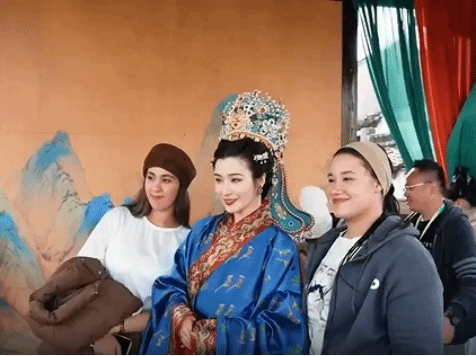 留学生还在黄酒小镇观婚礼、逛市集、乘乌篷船、听戏曲,与“全皇后”扮演者合照留念。