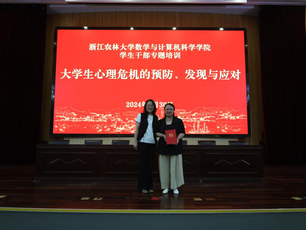 培训会后,数计学院学生工作负责人还代表学院向钟佳君颁发聘书,聘请其担任数计学院心理辅导站顾问。