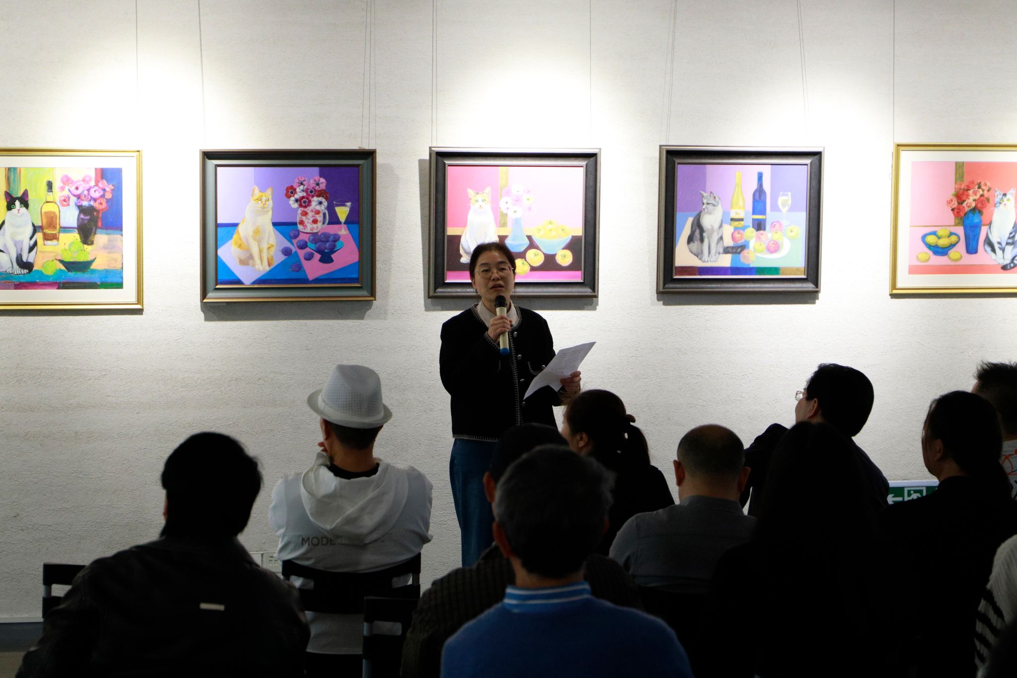 11月9日下午,《美猫如花,百貌百姿》李宏伟主题绘画艺术展在艺术学院举办。艺术学院党委书记黄晓芳,浙江省漫画家协会主席陶小明,民盟农林大学副主委申亚梅,中国美院教授董文运、校督导何征教授,树人学院外籍教授Cesare Moncell,原临安文联主席江跃良,临安、滨江、萧山各区美协主席及本校师生100多人参加开幕式。