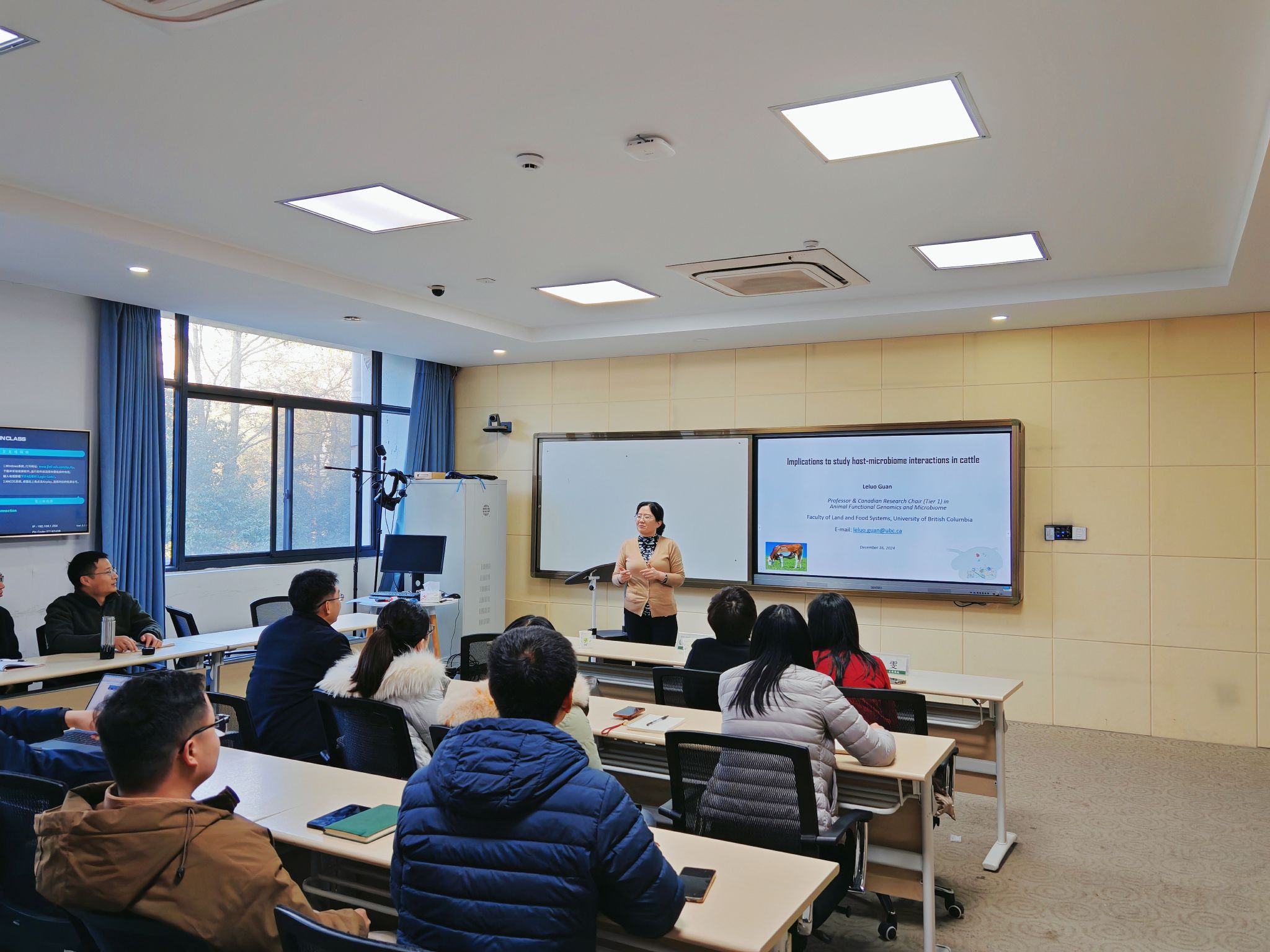 12月16日下午,加拿大不列颠哥伦比亚大学Leluo Guan教授应邀来动科动医学院进行学术交流活动,校党委委员、动科动医学院院长宋厚辉,学院党委书记魏玲玲参加交流会。Leluo Guan作题为“Implications to study host-microbiome interactions in livestock animals”的学术报告。畜牧学科师生参加会议。