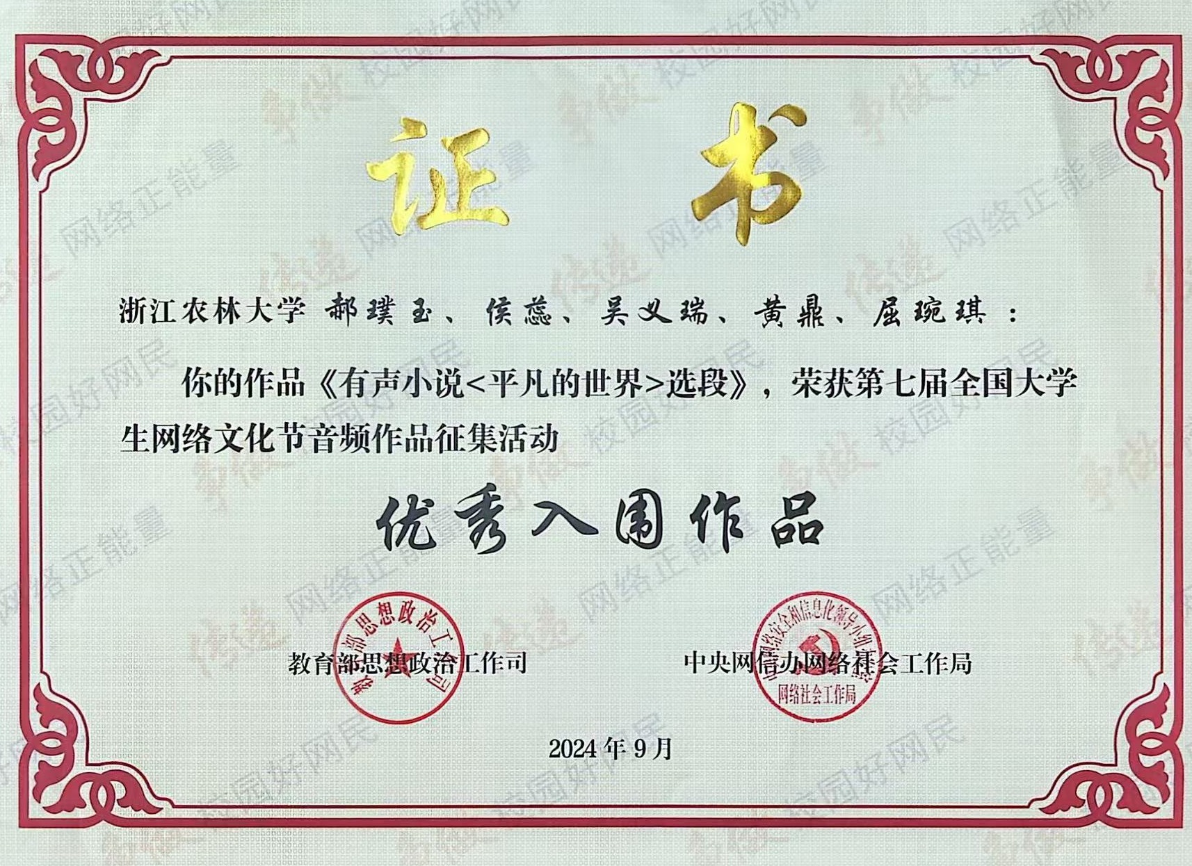 近日,由教育部思想政治工作司与中央网信办网络社会工作局共同主办的第七届“全国大学生网络文化节”结果揭晓。我校新闻中心指导、学生通讯社广播电台创作的《有声小说<平凡的世界>选段》荣获优秀入围作品。