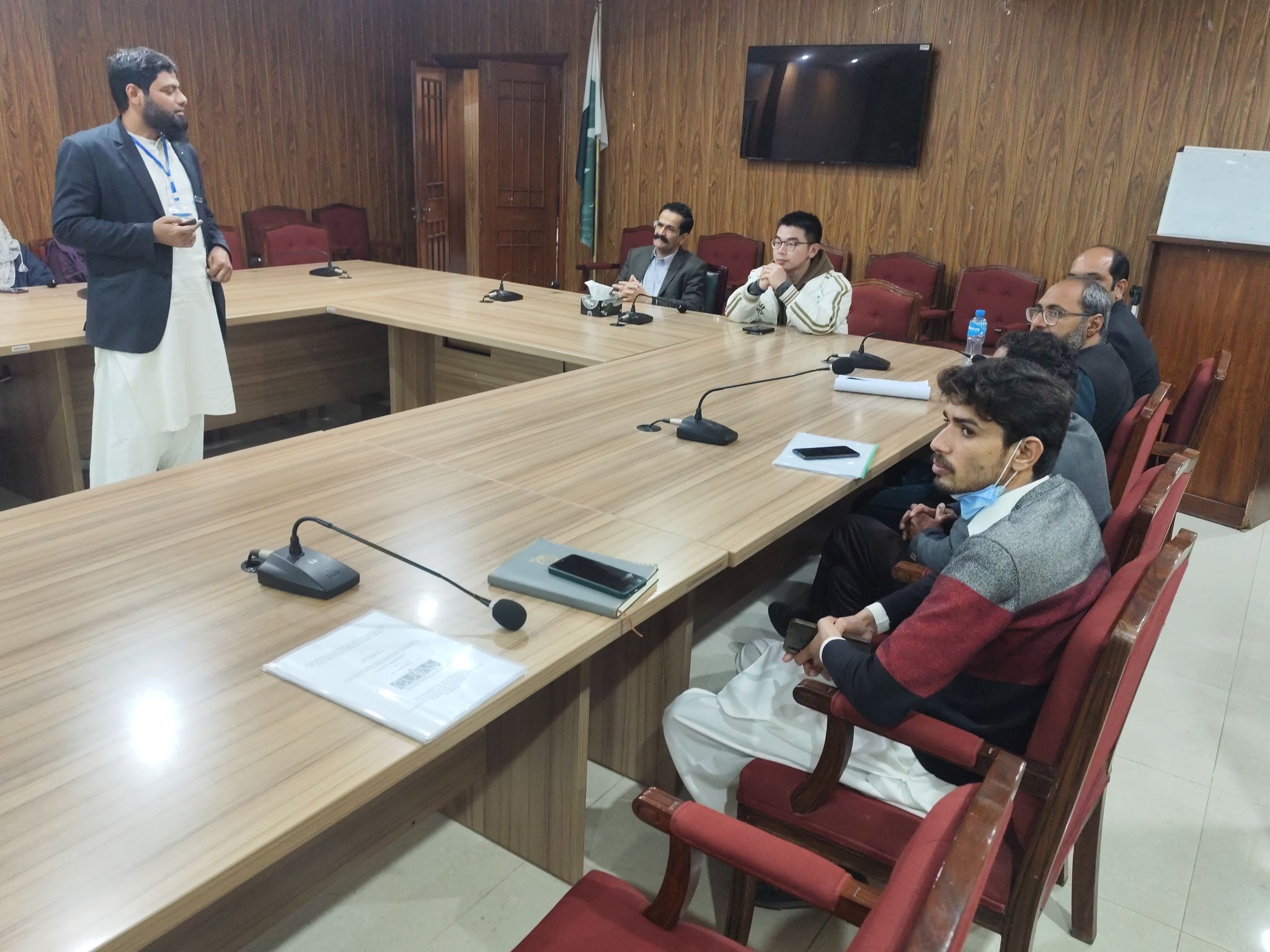 乔里斯坦畜牧兽医大学为梁鑫龙组织了热烈的师生见面欢迎会,并为他专门制定了课程和活动。期间,梁鑫龙投身兽医学临床实践,与当地DVM(兽医学博士)学生和导师紧密协作,学习巴基斯坦的动物诊疗技术以及疾病防控体系。他重点调研了该校现代化实验室、动物骨骼标本馆及教学农场,实地考察尼里拉菲水牛、巴基斯坦长耳羊等特色畜种。还通过参加专题讲座,积极与巴方师生探讨兽医公共卫生及动物疫病防控领域的国际前沿动态,分享中国兽医学教育的发展成果,就中巴两国在兽医学人才培养方面的异同展开探讨,促进了跨文化学术思维的碰撞与融合。