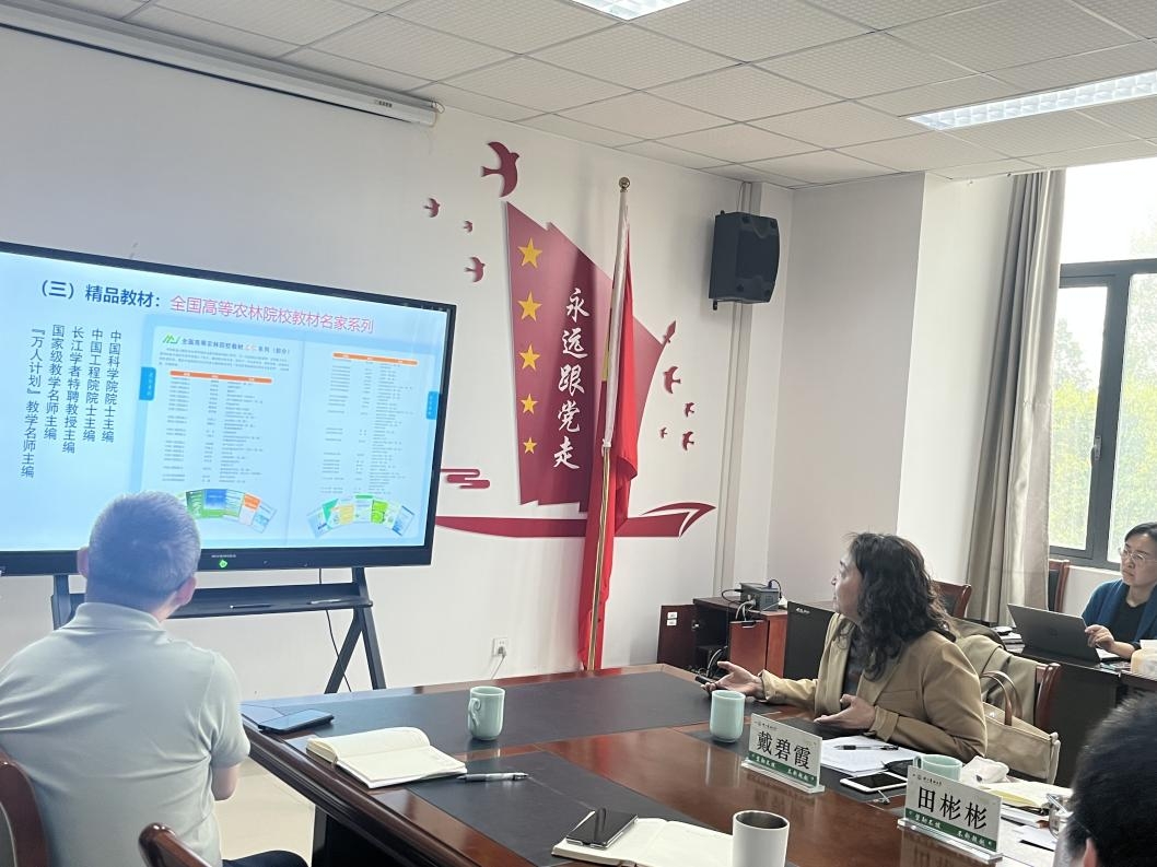 会上,戴碧霞分享对教育出版的认识,并展示了中国农业出版社历年来出版的经典教材和精品教材,结合教材工作的大背景,提出了精品教材的建设方向和路径。她希望,学校可以结合特色资源,打造具有农林特色的教材。中国农业出版社高教分社田彬彬重点阐述了“新形态教材”的类别、特征,并分享了数字教材建设的相关案例。