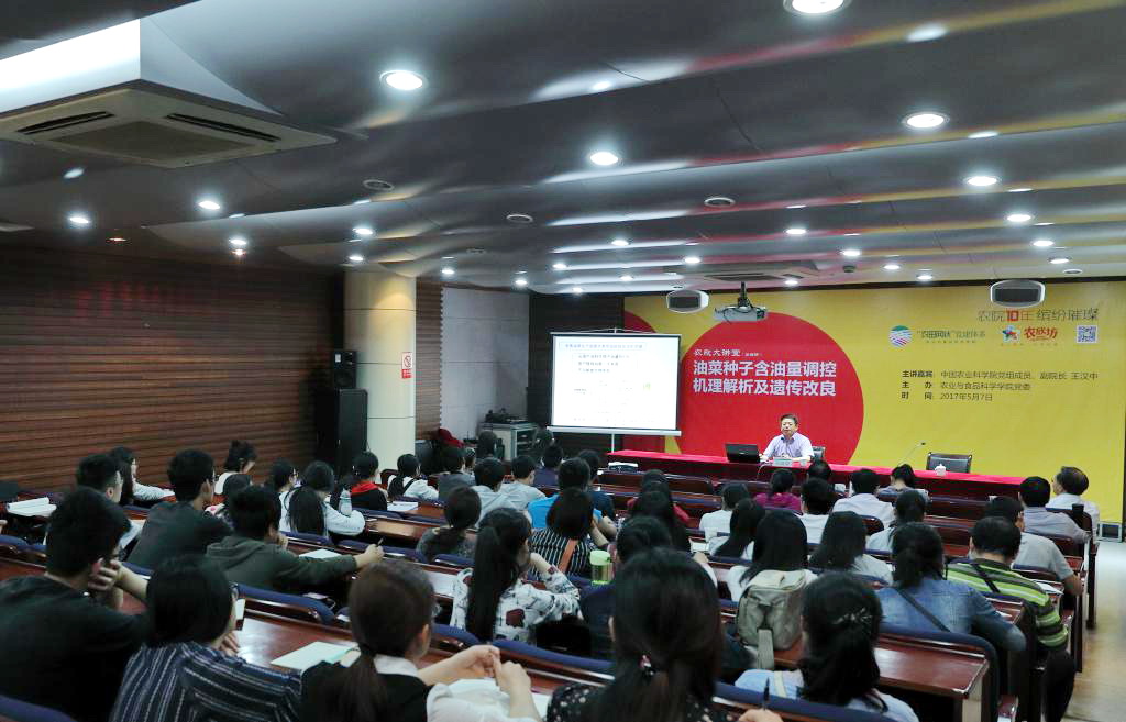 5月7日下午,中国农业科学院党组成员、副院长王汉中研究员作客开云体育平台体验活动“农欣大讲堂”,作了题为《油菜种子含油量调控机理解析及遗传改良》的学术报告,拉开了学院十周年院庆活动“学术季”的序幕。中国工程院院士喻树迅出席报告会。报告会由院长朱祝军主持。