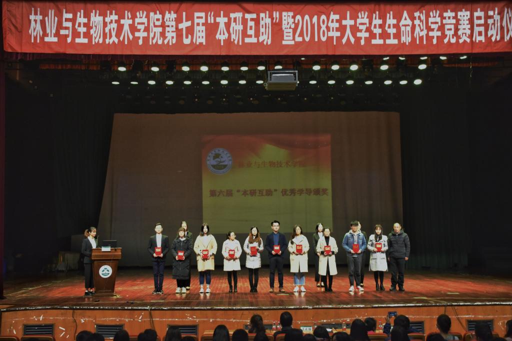 为进一步强化“三全”育人理念,提升学生的“三自”功能,拓展学生创新创业能力,帮助同学们找到身边的学习榜样,3月22日下午,林业与生物技术学院第七届“本研互助”暨2018年大学生生命科学竞赛启动仪式在活动中心影剧院举行。学院相关工作负责人、优秀导师代表、辅导员以及一千余名研究生、本科生参加本次活动。
