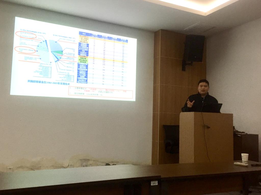 吕正勇总工程师具有丰富的场地修复工程经验,并进行了多项修复技术的研发,获得30多项授权发明专利。他结合场地修复案例详细介绍了原位热解析、化学氧化以及稳定化固化技术原理与工艺,以及不同技术的适用范围。报告会上,两位专家都与在座师生进行了热烈互动,耐心解答了老师和同学们提出的相关问题。