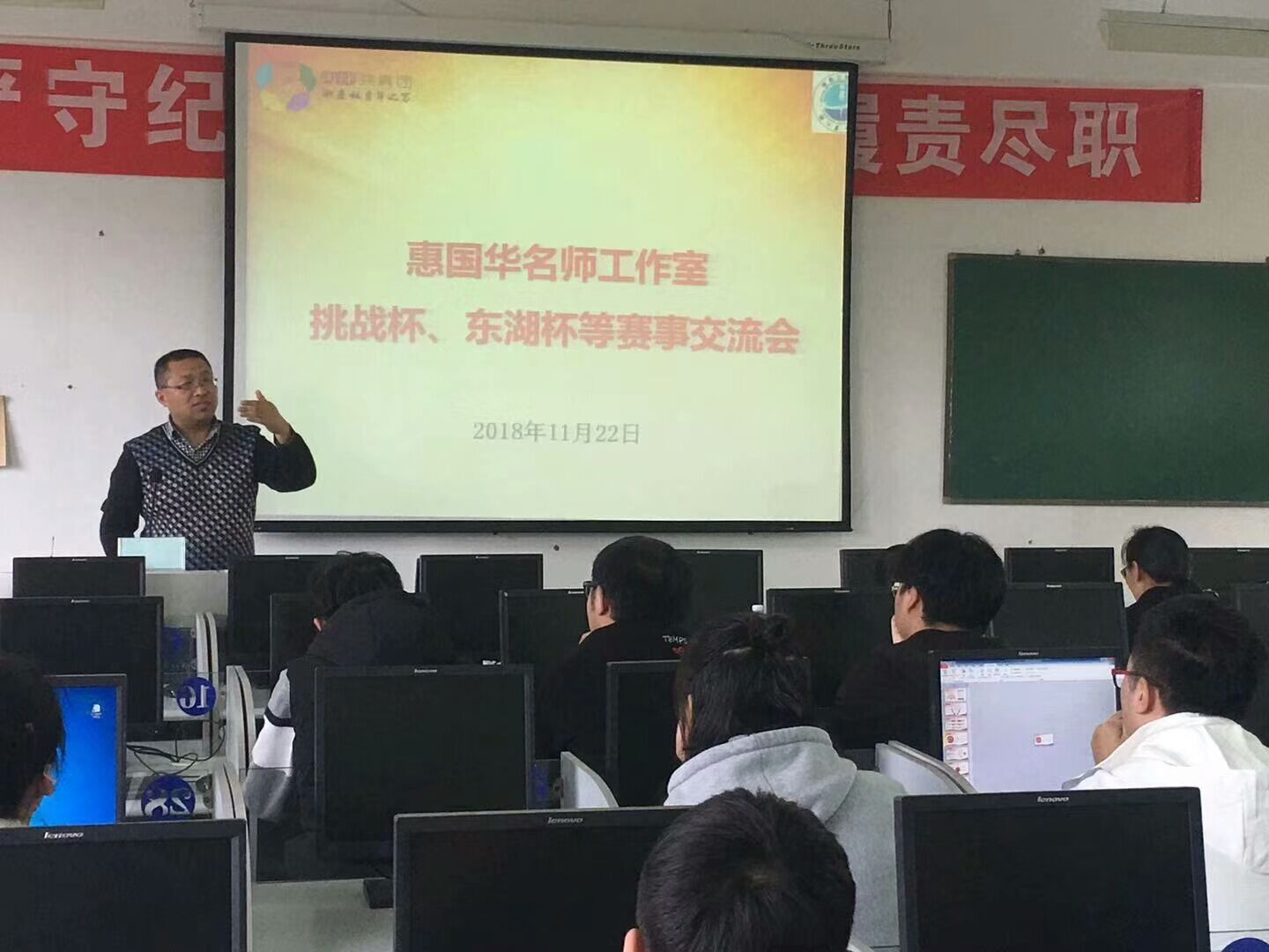 近日,为提高我校学生对挑战杯、东湖杯等赛事的了解,分享参赛经验,加强各参赛团队之间的交流,惠国华名师工作室举办学科竞赛赛事交流会,我校东湖杯参赛团队师生和信息工程学院师生代表参加。