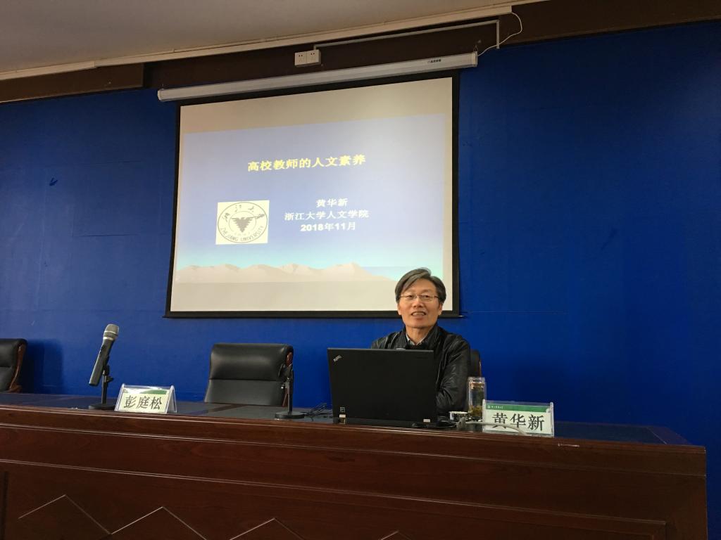 另外,黄华新教授也为我院师生做了题为“高校教师的人文素养”讲座。黄教授先从人文素养的三个维度来阐述人文素养的内涵,接着又从角色认知、阳光心态、智慧人生等方面提出提升高校教师人文素养的建议。整个讲座精彩纷呈,信息量大,实用可行,赢得了师生们的一致好评。