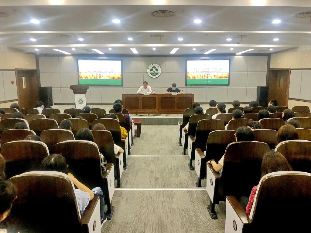 学院相关负责人宣读《关于组织申报2019年校级大学生科研训练项目的通知》文件,并通过实例说明了本科生参与科研项目的重要性,鼓励本科生多参与科研创新项目。