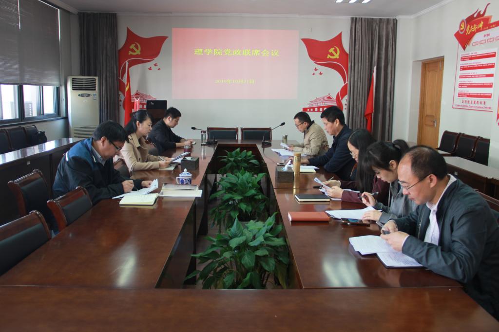 10月21日,理学院召开党政联席会议,专题研讨教学工作。会议由院长周国泉主持,学院全体党政领导、党委委员参加了会议。