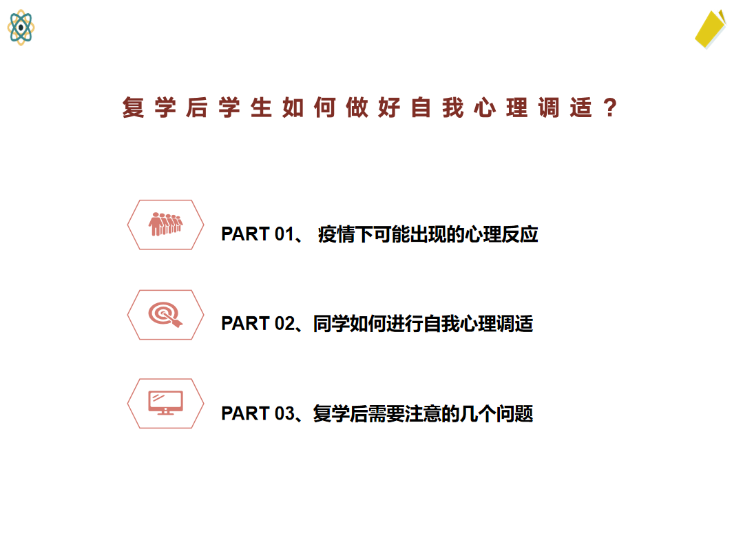 疫情发生后,我们每个人都经受了一次从未有过的心理冲击。作为高校大学生,不管是否身处重点疫区都可能会出现不同程度的心理失衡甚至心理危机。如今随着学生返校复学,如何积极配合学校的各项防疫工作做好自己的事是我们每一个教师应有的担当。