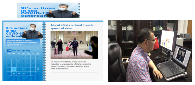本着“讲好中国故事、传播好中国声音、阐释好中国特色、展示好中国形象”的精神,赵有华介绍了习近平的生平、主要工作经历、《习近平谈治国理政》两册著作的主要内容、新思想、新观点和新论断等,详细说明了习近平总书记作为表达其治国理政思想生动比喻的“石榴籽”、“绣花”、“眼睛、生命”、“方向盘、安全带”、“稻草人”等词语的真正内涵。重点讲述了2020年疫情防控和中国脱贫攻坚中所体现的习近平以人民为中心的治国理政思想。