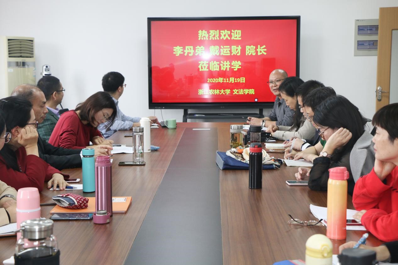为了加强外语教师的课程思政能力与教学研究能力,11月19日,文法学院外国语言文学学科邀请了浙江工商大学外国语学院院长李丹弟教授和浙江传媒学院国际文化传播学院院长戴运财教授莅临讲学。讲座学院相关负责人、外国语言文学学科负责人、英语专业负责人、公外部相关负责人以及近20位外语老师聆听了讲座。