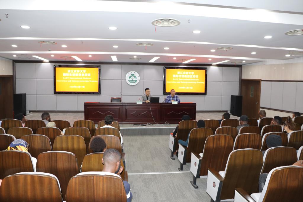 为提高我校国际生创新创业能力,11月19日,国际教育学院邀请浙江月福汽车用品有限公司执行总裁邹云锋为国际生进行创新创业培训。会议由院长赵有华主持,120名在校国际生代表参加了培训。