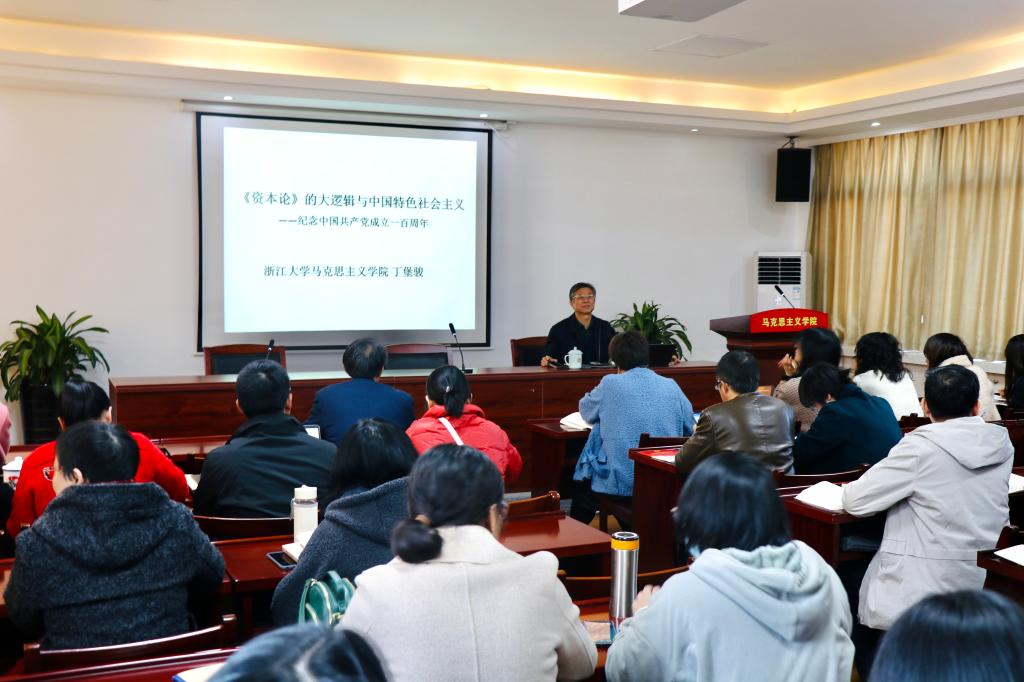 11月25日下午,浙江大学马克思主义学院特聘教授、吉林财经大学全国中国特色社会主义政治经济学研究中心主任丁堡骏教授应邀来马克思主义学院,并作了“《资本论》的大逻辑与中国特色社会主义——纪念中国共产党成立一百周年”专题讲座,会议由院长高君主持,学院全体师生参加。
